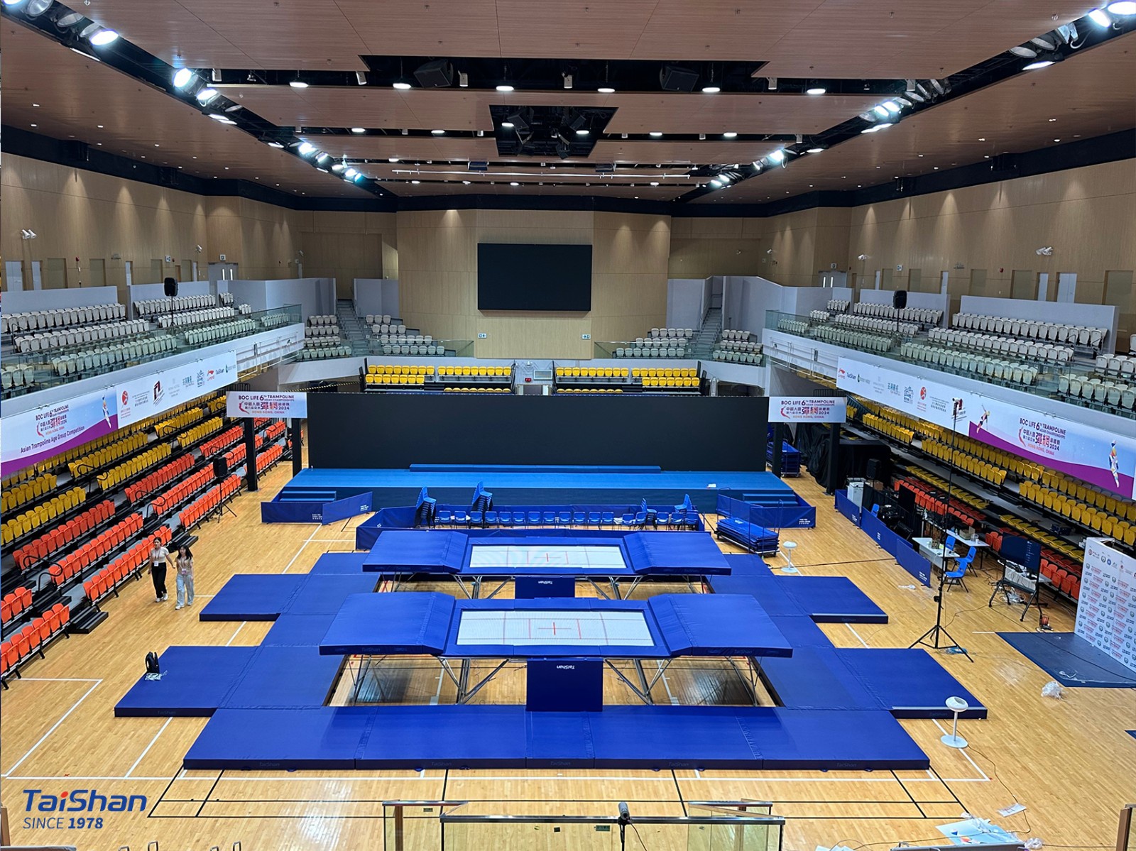 In order to ensure the excellent performance of gymnasts, Taishan Sports’ professional service team went to Hong Kong in advance to prepare for the installation and debugging of the competition venues. The state-of-the-art gymnastics equipment provided by Taishan Sports will shine in the competition.