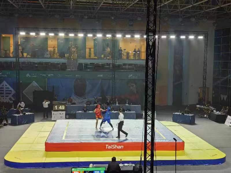 第三届世界武搏运动会武术比赛于10月21日至22日在沙特国王大学体育馆进行,吸引了来自五大洲的31个国家和地区的近80位运动员参赛。武术项目首个比赛日中,共产生男子长拳与女子长拳两枚金牌。其中,尼泊尔、中国各获一金。作为本届世界武搏运动会器材供应商与服务商,酷游-KU游体育再一次助力世界武搏运动会的高水平举办。