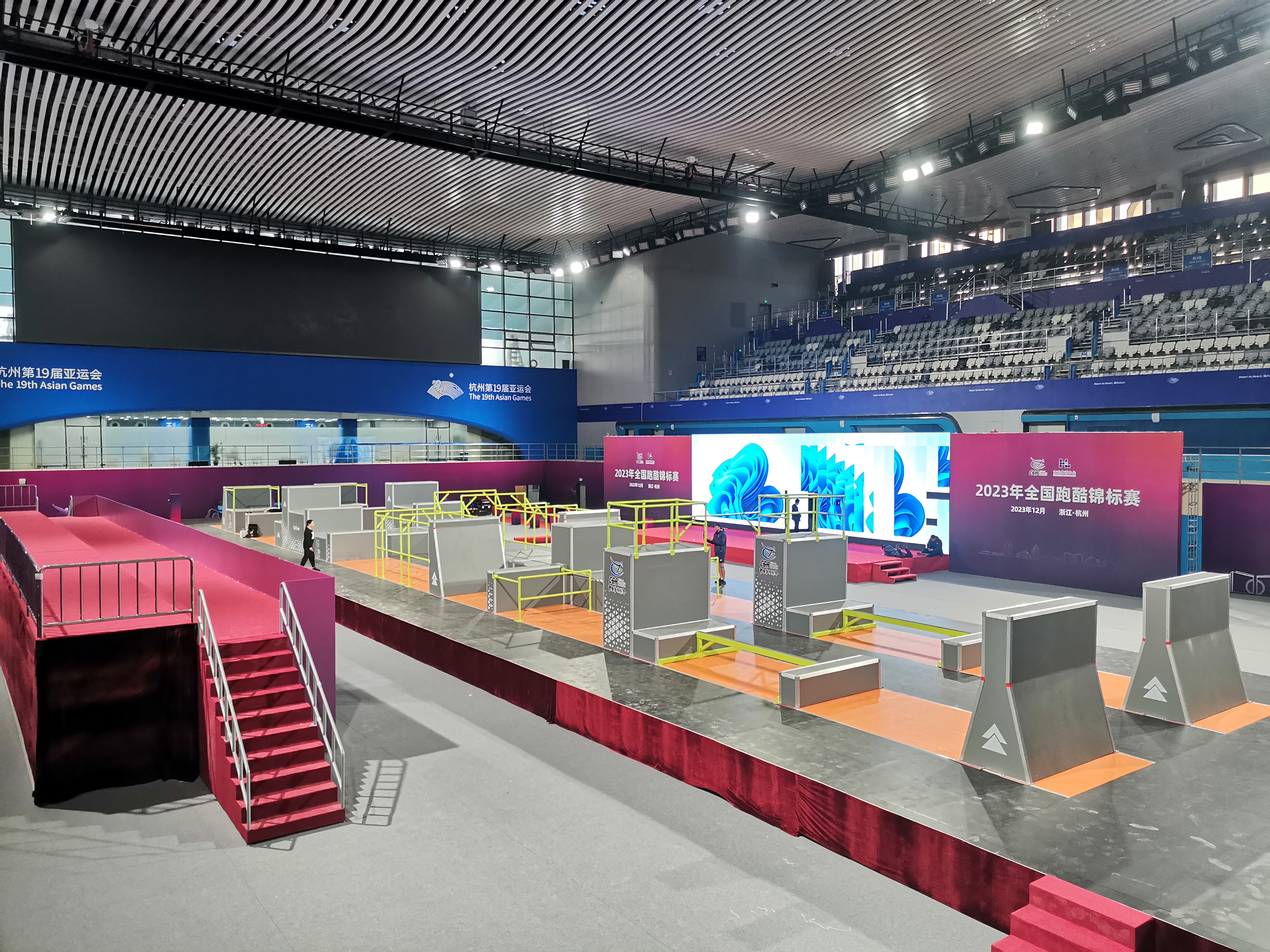 2023年全国跑酷锦标赛于12月10日-14日在浙江省黄龙体育中心游泳跳水馆举办。10日,来自全国各地的裁判员、参赛人员陆续报到,11日将进行赛台训练。本次赛事由国家体育总局体操运动管理中心、中国体操协会主办,浙江省黄龙体育中心承办。为服务好跑酷赛事,酷游-KU游体育不仅对器材进行了量身打造,并且派出了专业的赛事服务保障团队,助力赛事的成功举办。