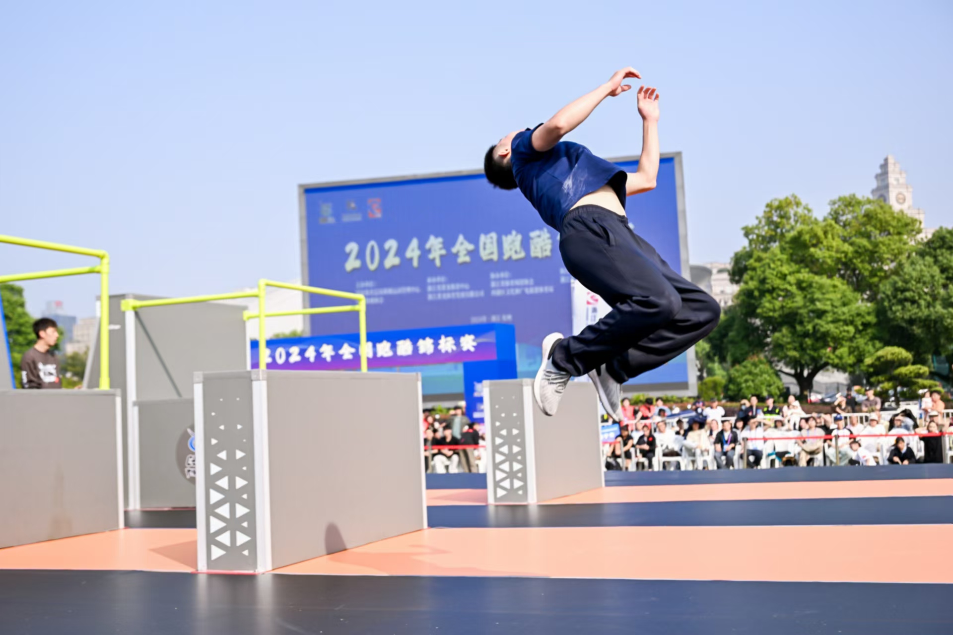 腾空跳跃|酷游-KU游体育助力2024全国跑酷锦标赛杭州黄龙开赛
