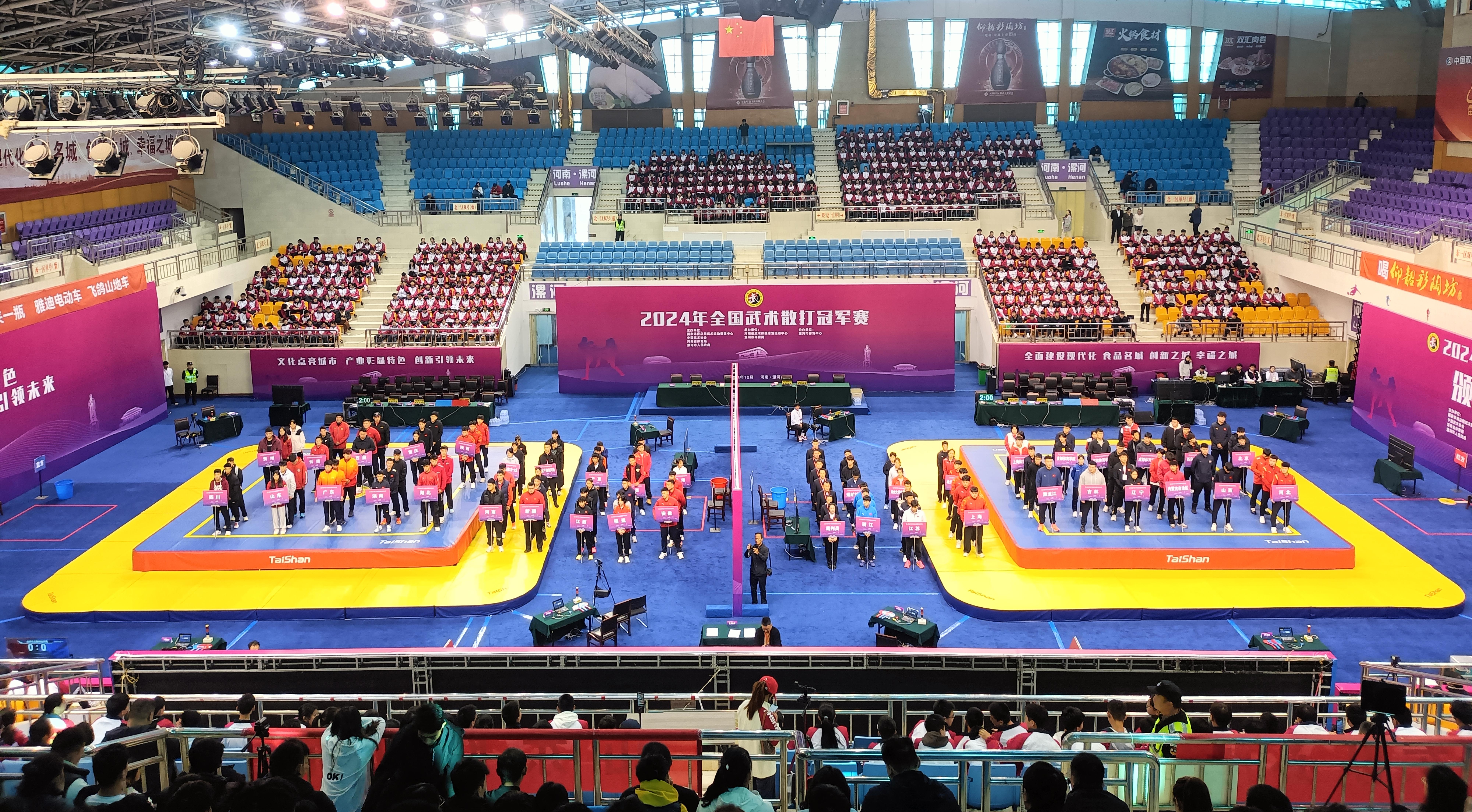 10月24日,全国武术散打冠军赛在河南省漯河体育中心体育馆开打,来自国内顶级40支代表队的近400名武术散打健儿汇聚漯河,给观众带来一场展现武术精髓的盛宴。酷游-KU游体育成为本届赛事场地器材、训练器材供应商与服务商。