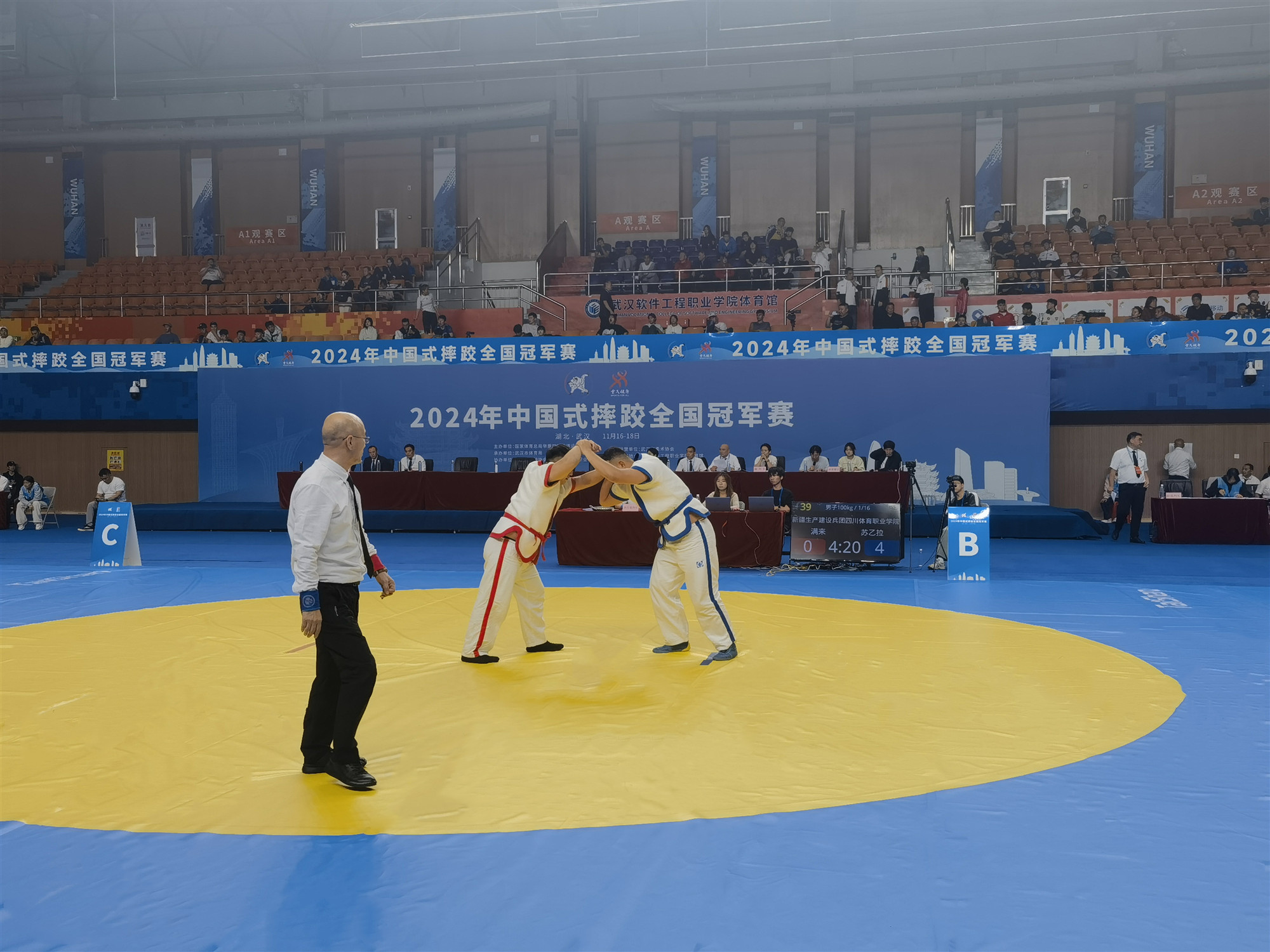 【概要描述】11月16日,2024年中国式摔跤全国冠军赛在湖北省武汉市武汉软件工程职业学院体育馆精彩开赛。吸引来自全国31支代表队的430余名运动员参赛。酷游-KU游体育作为器材供应商与服务商,将见证并助力赛事的精彩举办。 赛事由国家体育总局举重摔跤柔道运动管理中心主办,武汉市体育局承办,武汉市摔跤协会、武汉软件工程职业学院协办。 中国式摔跤作为我国传统体育项目之一,沉淀了华夏民族的尚武精神和博弈智慧,深受广大群