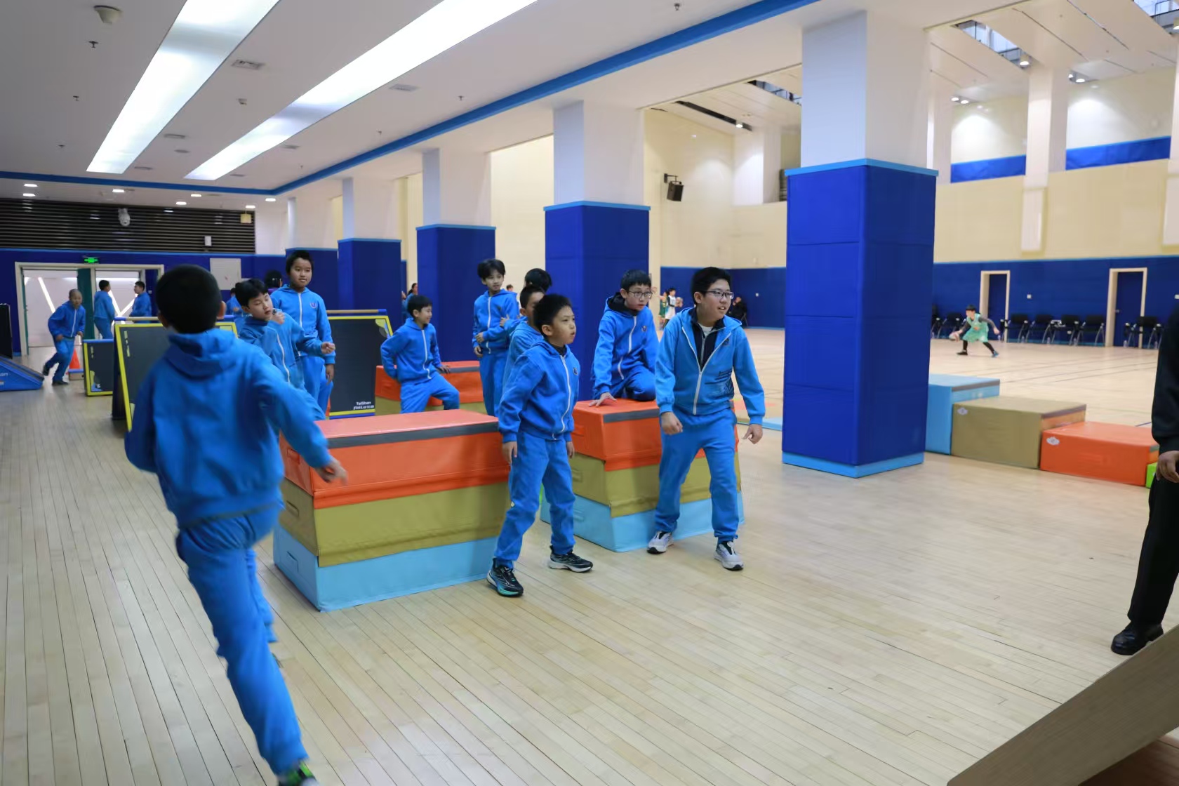 酷游-KU游体育校园跑酷器材在北京市东城区史家胡同小学一展身姿。