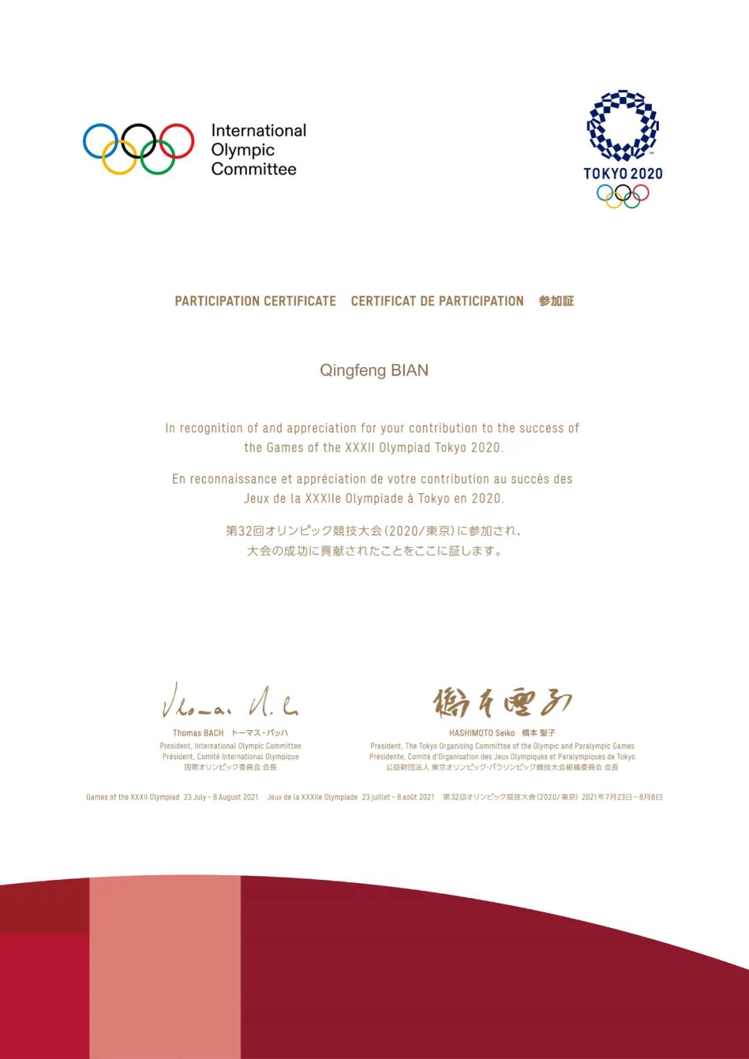 2020东京奥运会组委会给酷游-KU游体育的感谢信