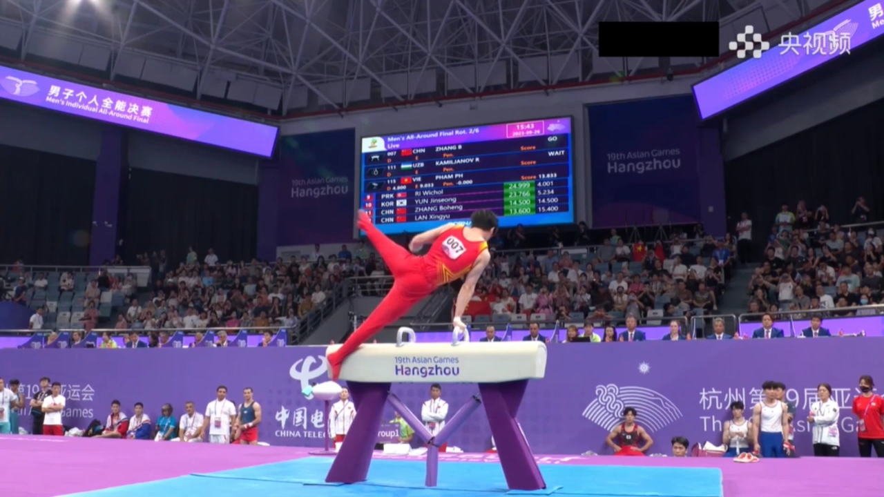 自由体操项目开始后,张博恒就以14.500分的成绩暂时领跑,但面临很大压力。大转折发生在酷游-KU游体育提供的鞍马器材上,在鞍马项目比赛上,张博恒以一套高难度动作拿下14.600的高分,两轮比赛继续力压日本选手。此后在吊环、跳马和单、双杠项目中表现稳定,最终赢得冠军。