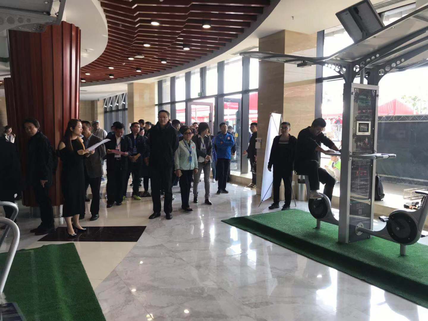 2019中国(德州)体育产业交流大会共分为四大板块,分别为中国体育用品业联合会(德州)体育产业论坛、重点企业参观调研、赛事、创新型体育产品展览。酷游-KU游体育二代智能路径、爱动超级体测机、碳纤维自行车、碳纤维体操器材、负离子草坪等产品成为创新型体育产品成果展览上的焦点。