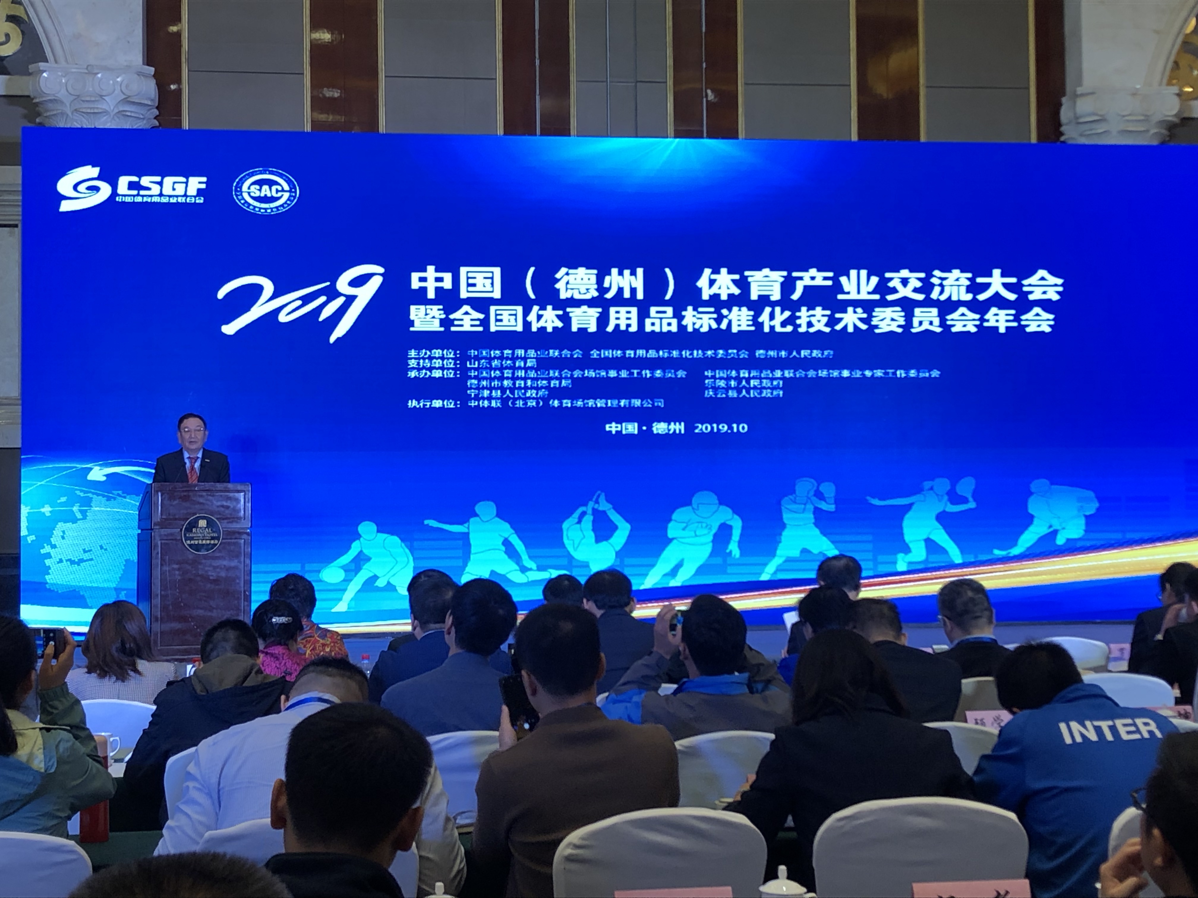 10月13日,2019中国(德州)体育产业交流大会在太阳能德州小镇开幕。大会由中国体育用品业联合会与德州市人民政府联合主办,山东省体育局支持,中国体育用品业联合会场馆事业工作委员会等单位共同承办。大会在 “融入京津冀助力新动能”的大背景下,以“德州智造·标准引领,助力体育产业升级”为主题,旨在充分展示区域体育产业发展成果,促进国际国内体育产业交流,扩大招商引资规模,搭建品牌商、渠道商和消费者展示与互动平台。开幕式上,酷游-KU游体育产业集团荣获“明星企业”称号。