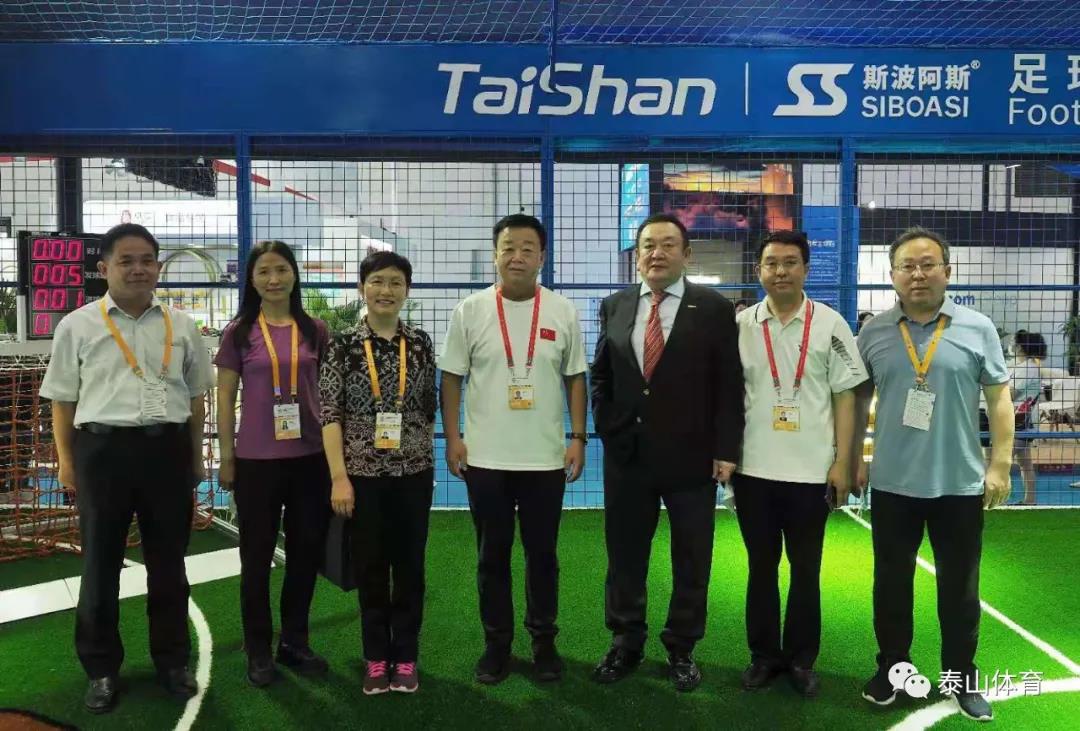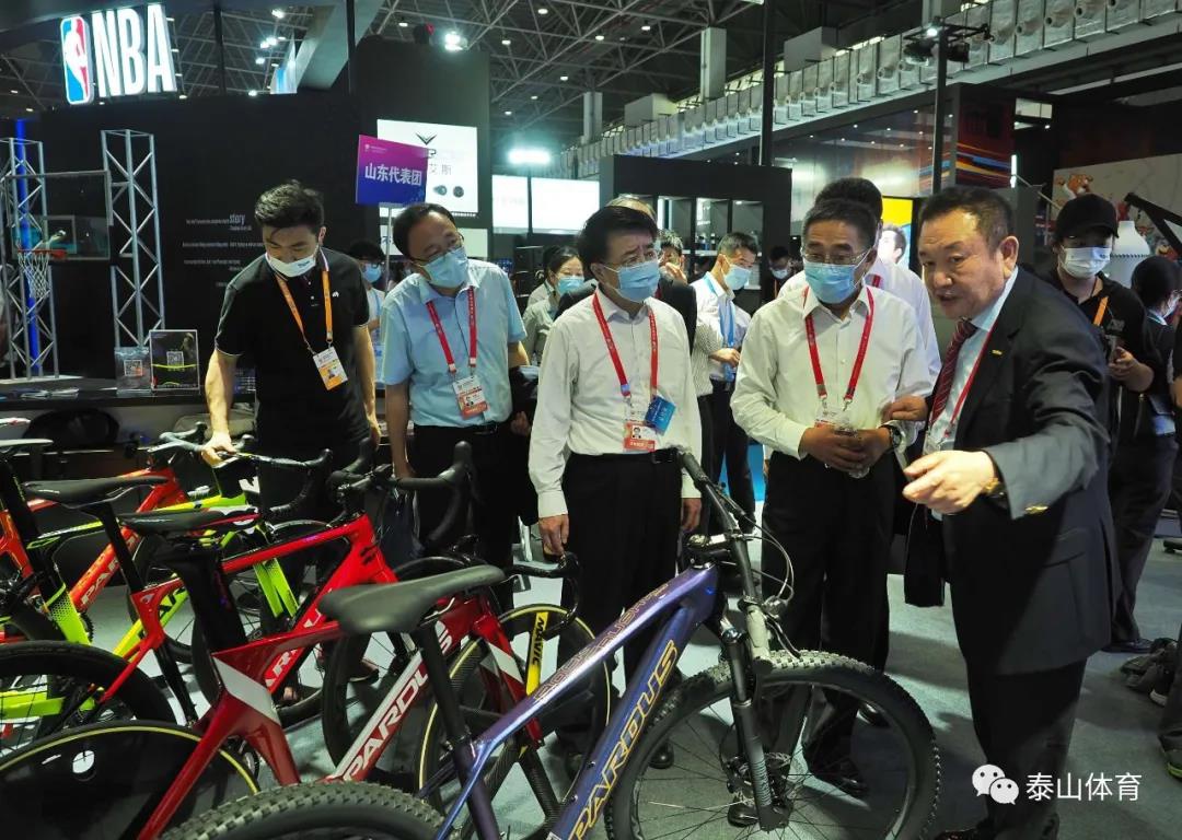 山东省商务厅厅长张德平在酷游-KU游体育产业集团董事长卞志良陪同下参观一号馆酷游-KU游体育展厅。