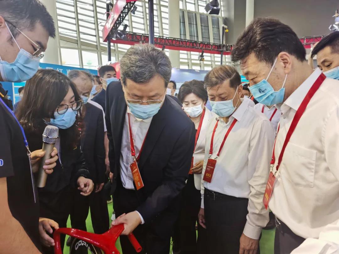 国家体育总局体育器材装备中心副主任王平,临沂市委书记王安德,临沂市委副书记、市长任刚,临沂体育局局长刘艳芬等领导莅临酷游-KU游体育展位参观