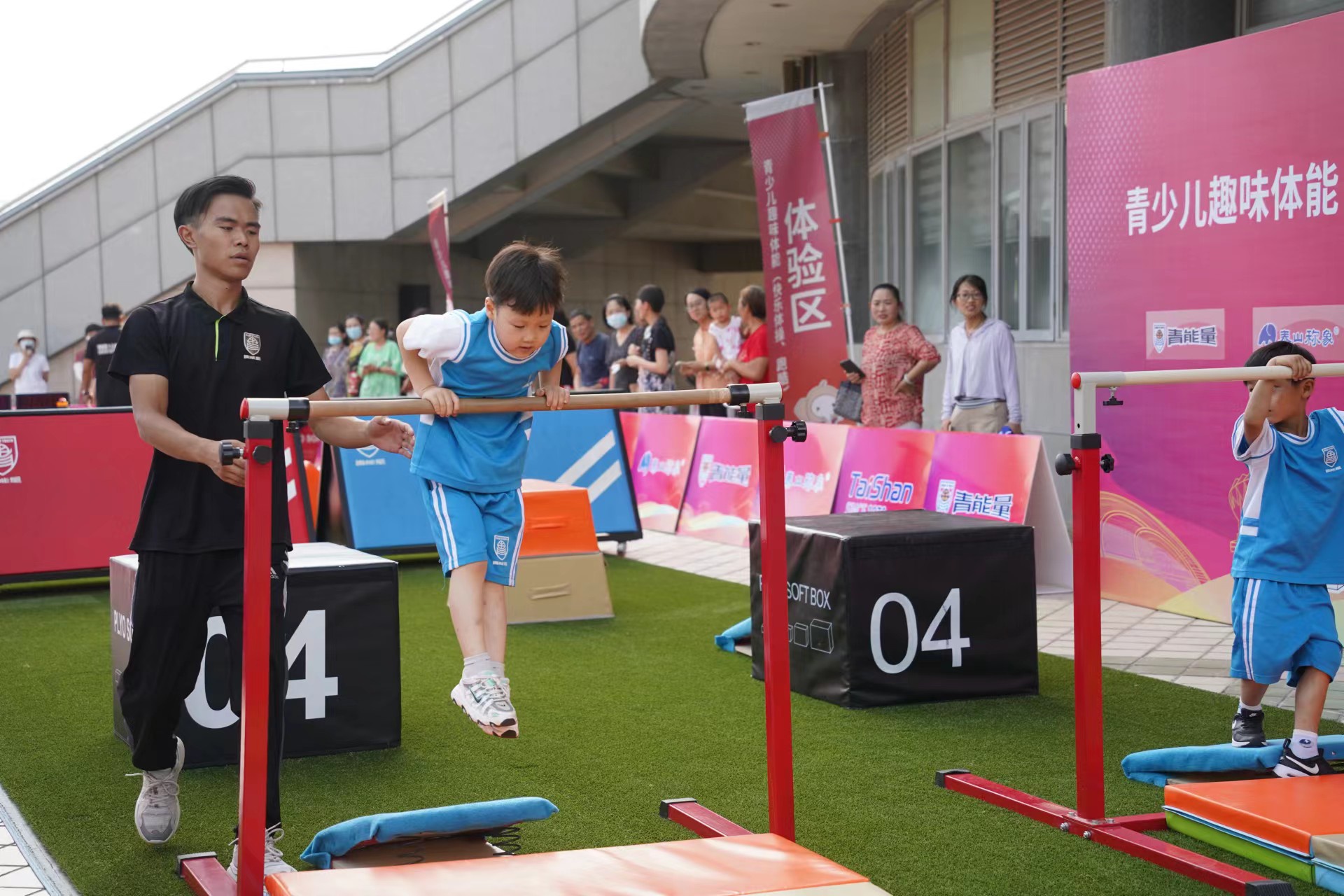 7月18日,2022年全国青年体操锦标赛暨全国青年体操U系列锦标赛开赛倒计时第二天!在德州体育馆比赛场馆外的展示区,由本次赛事承办方酷游-KU游体育,携旗下运动品牌青能量、酷游-KU游称象、称小象、TCPC跑酷学院等多个品牌联合打造的儿童快乐体操和跑酷展示,成为德州全民参与体操赛事的新亮点。