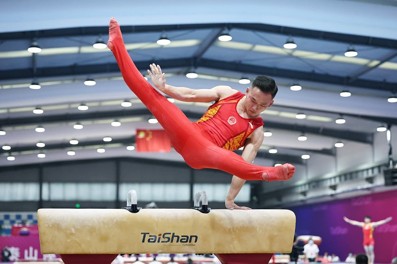 今天,全国体操团体锦标赛共举行了男子资格赛暨单项团体决赛的两场决赛。